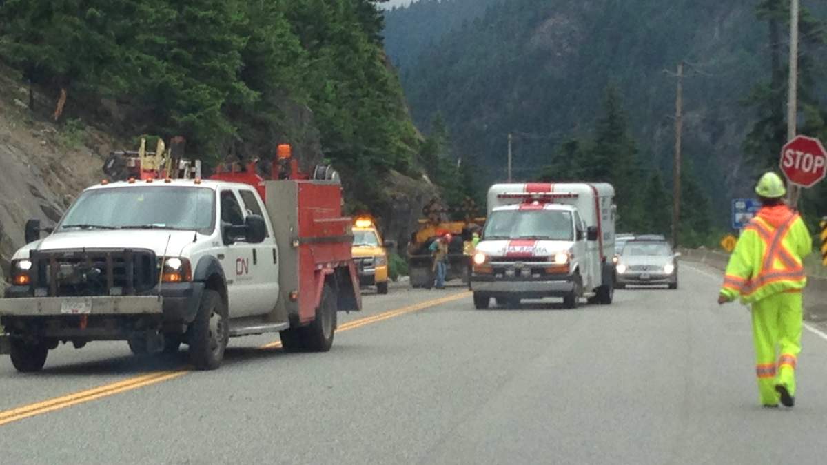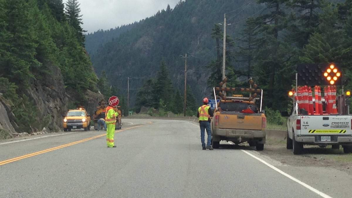 The highway was open to single-lane alternating traffic only until the rock was cleared and the road is repaired. Before it was shut down, a SUV hit a rock that had fallen on the road. The driver—and sole occupant of the vehicle –wasn’t injured, according to the Ministry of Transportation and Infrastructure.