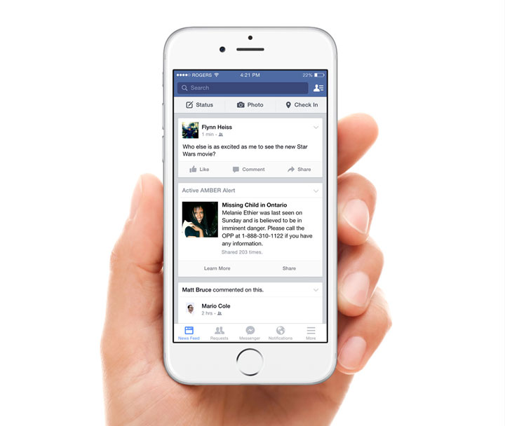 TORONTO – Facebook users in Canada will soon receive Amber Alert notifications to their timelines in an effort to help locate missing children in their area.