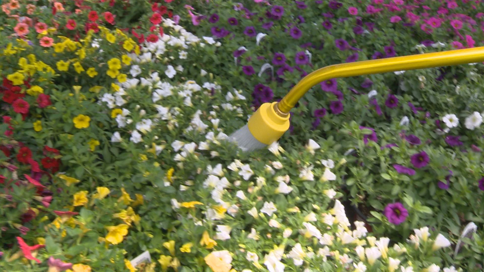 “We go through a lot of water in a day,” explained Brad Crassweller with Cedar Creek Gardens & Outdoor Expressions Landscapping. “We try and do our best but if you try and leave your (flower) basket out in the sun and wind you won’t have a basket for long.”
