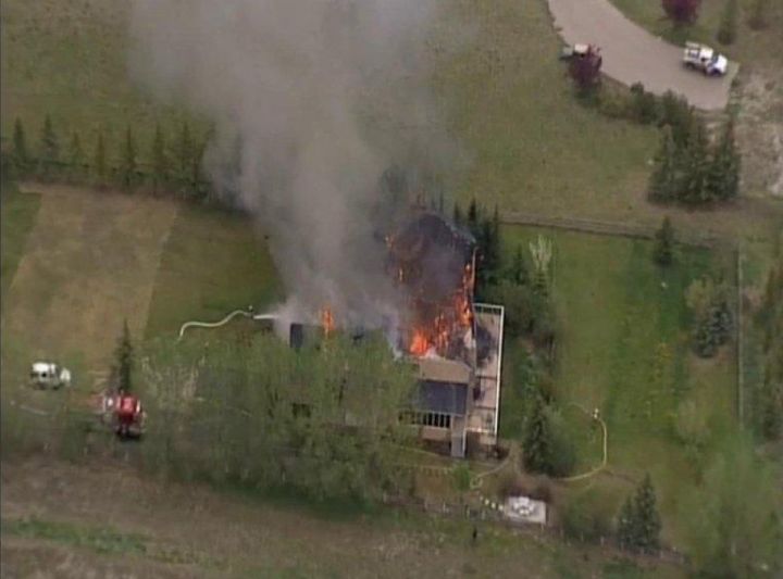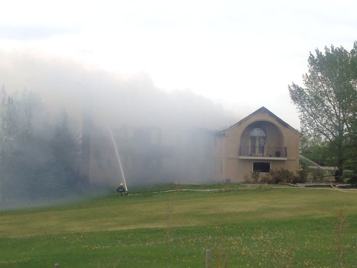 Rocky View Fire Department District Chief Dax Huba said crews started a defensive attack after confirming no one was in the home. Over 10,000 litres of water was brought in by each fire truck as crews spent hours doing return trips in attempt to knock down the fire and stop its spread. Huba said at least part of the roof has collapsed into the main floor.
