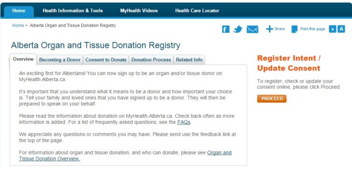 Most often transplants come from deceased donors, who can register their intent to donate in Alberta online, or at any Alberta registry branch. Over 120,000 Albertans have signed up since the registry was launched in April, 2014.