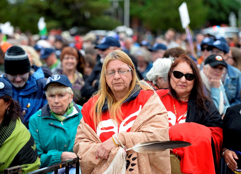 “Let’s not let the events of recent past define us,” Josee Whiteduck, a Kitigan Zibi elder, told crowds in Ottawa.