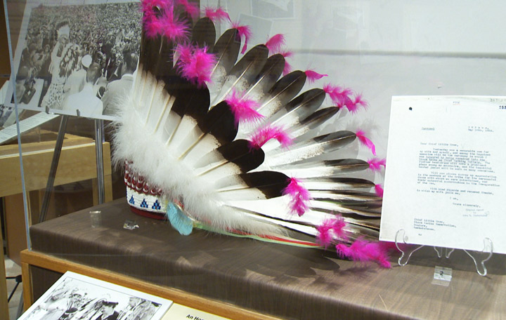 SASKATOON – A replica headdress, just like the one presented to former prime minister John G. Diefenbaker, is on display in Saskatoon. Whitecap Dakota First Nation had it made and donated it to the University of Saskatchewan earlier this year.