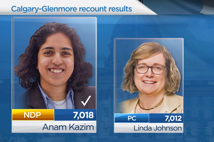 Elections Alberta says the recount by Alberta Court of Queen’s Bench confirmed that Kazim defeated incumbent Progressive Conservative Linda Johnson by six votes.