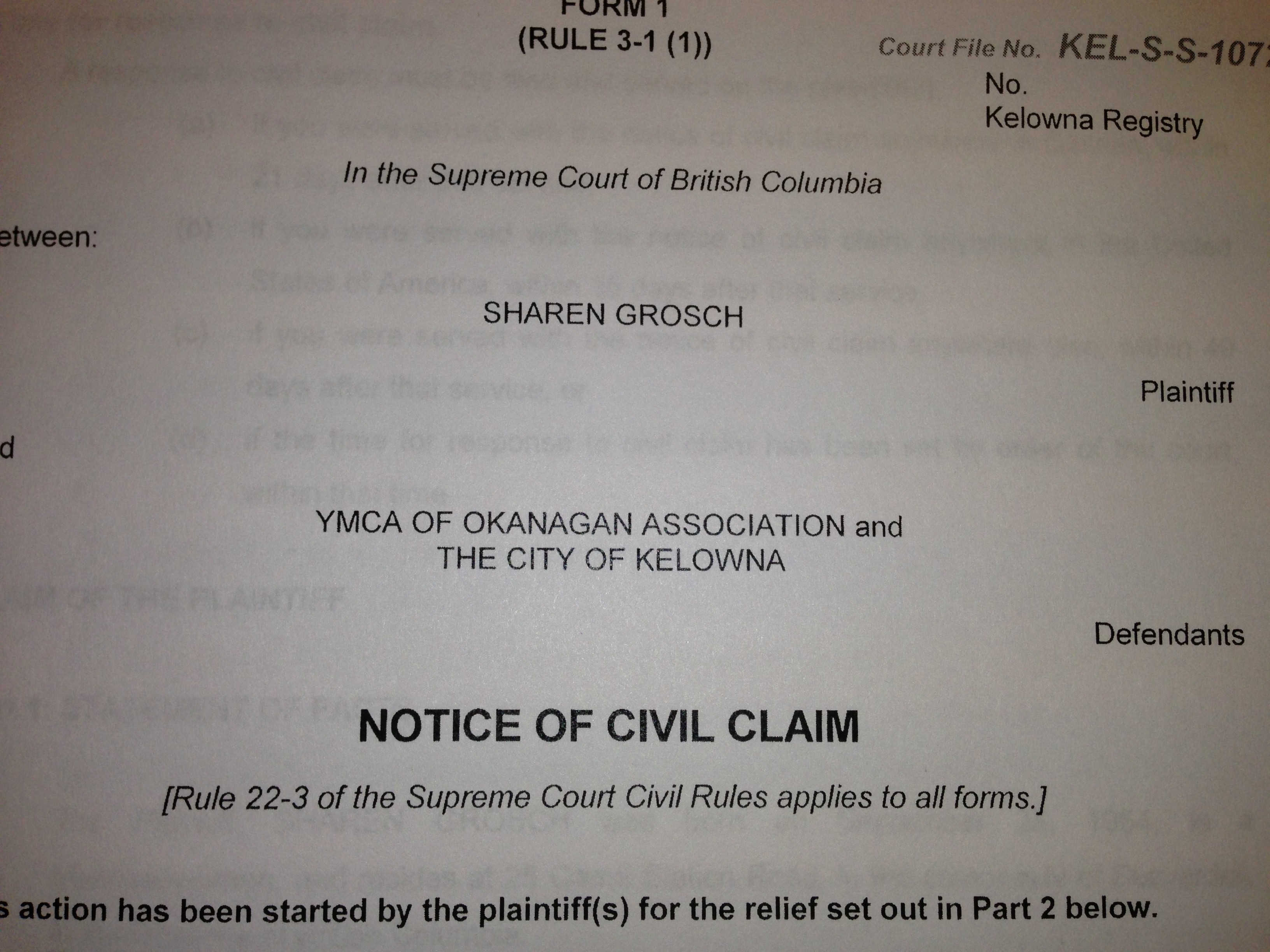 KELOWNA – A slip and fall at a Kelowna swimming pool has resulted in a lawsuit against the City of Kelowna and the YMCA of Okanagan Association.