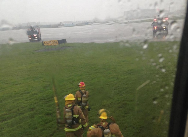 A passenger on the plane shared a photo on social media, suggesting the plane slid off the runway because of accumulating water.