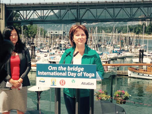 VANCOUVER – To celebrate International Day of Yoga on June 21, Premier Christy Clark has announced the Burrard Bridge will be shut down to hold a massive yoga class.