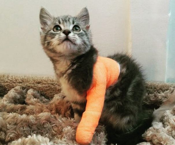 The Humane Society has been sharing his story – and updates on his condition – on Facebook and Instagram, building quite a following for the spirited kitten.