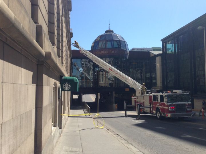 Officials were trying to determine exactly where the two fist-sized chunks came from during their investigation at the Palliser, which is at 1 Street and 9 Avenue S.W.