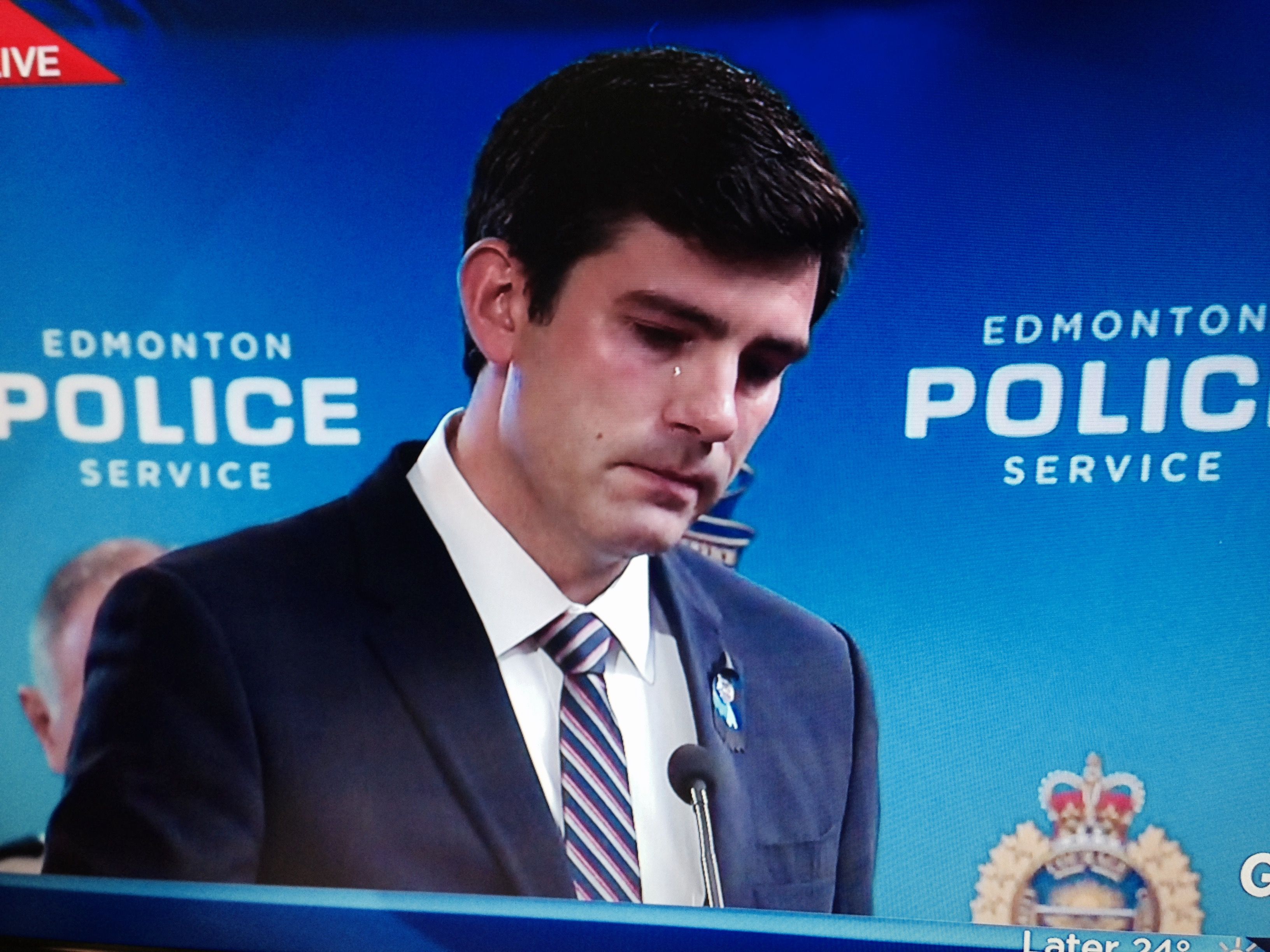 EDMONTON — On Tuesday morning, Edmonton Mayor Don Iveson expressed the grief many people were feeling following the killing of eight-year Edmonton Police Service veteran Const. Daniel Woodall.