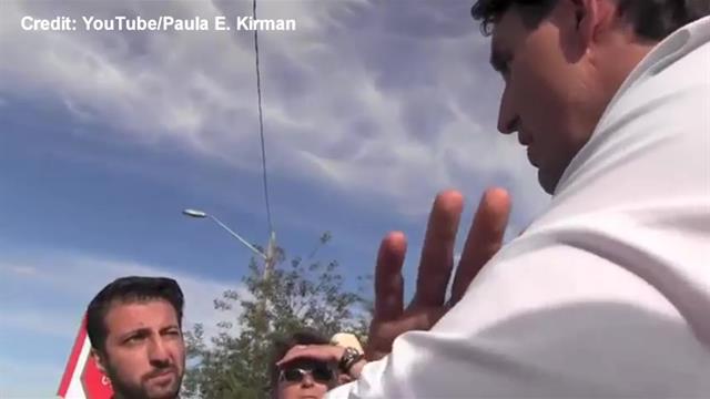 **UPDATE**: Global News reached out to Paula Kirman, the independent photojournalist who shot the above exchange. Her comments have been added to the story.