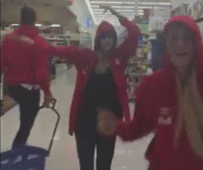 The video shows the four women walking down the store aisles before OMI’s “Cheerleader” starts playing. That’s when the dancing begins.