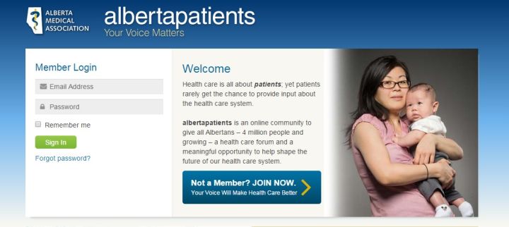 CALGARY – The Alberta Medical Association has launched a new online forum specifically for patients. Albertapatients.ca asks all visitors to register for a free account before continuing on to join discussion forums, sign up for newsletters or participate in surveys.