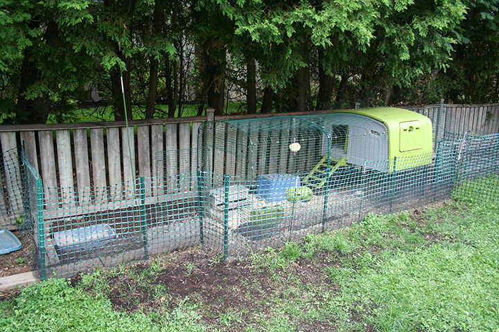 A rodent-proof feeder is recommended and fencing to prevent the chickens from escaping (and any predators from getting in) is also required around the coop.