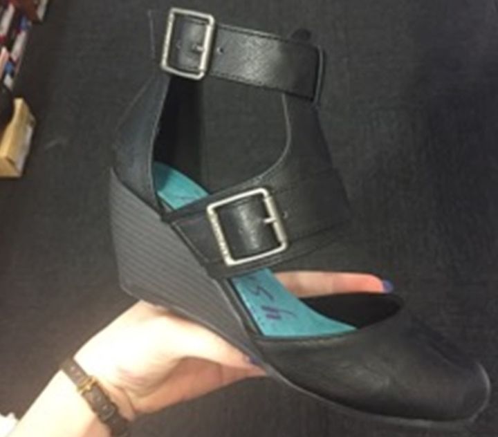 She says she looked for heels that provided ankle support, but claims “everything was vetoed except the 2 ½” wedge heel.”