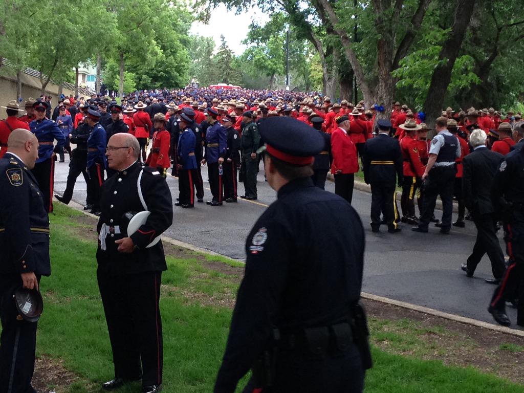 EDMONTON — It was an incredible scene in downtown Edmonton Wednesday morning as thousands of people lined the streets to watch an estimated 3,655 officers march in a procession to honour fallen Edmonton police Const. Daniel Woodall.