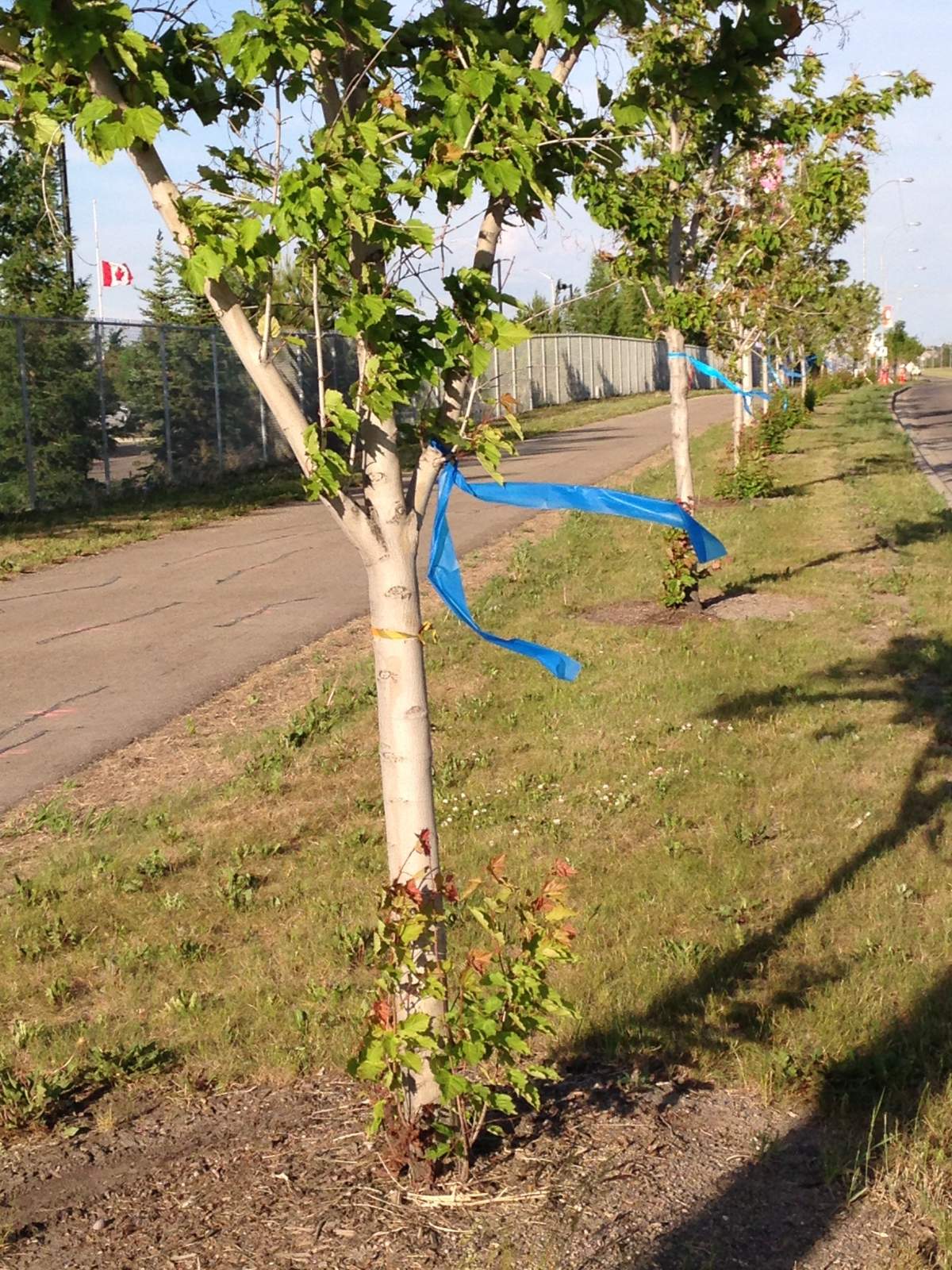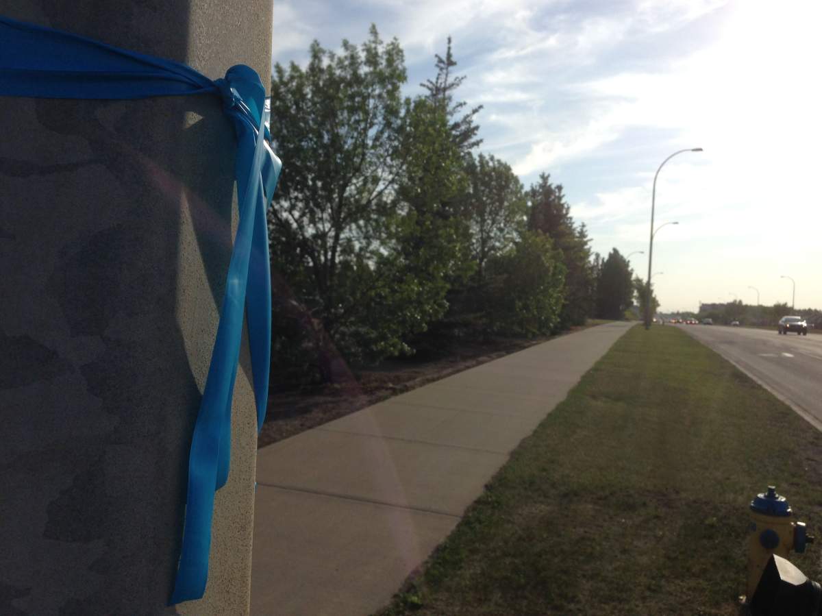 EDMONTON – They’ve line the streets of Edmonton for more than a week: blue ribbons tied to trees, street lights and lamp posts.