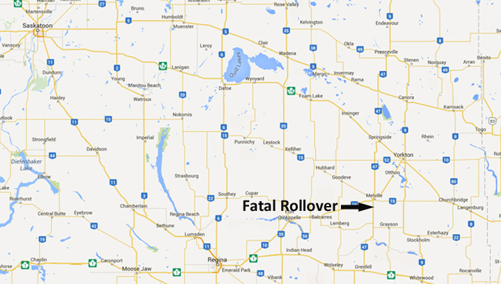 MELVILLE, Sask. – One person is dead after a rollover on a Saskatchewan highway. It happened Thursday morning on Highway 47 approximately 10 kilometres south of Melville.