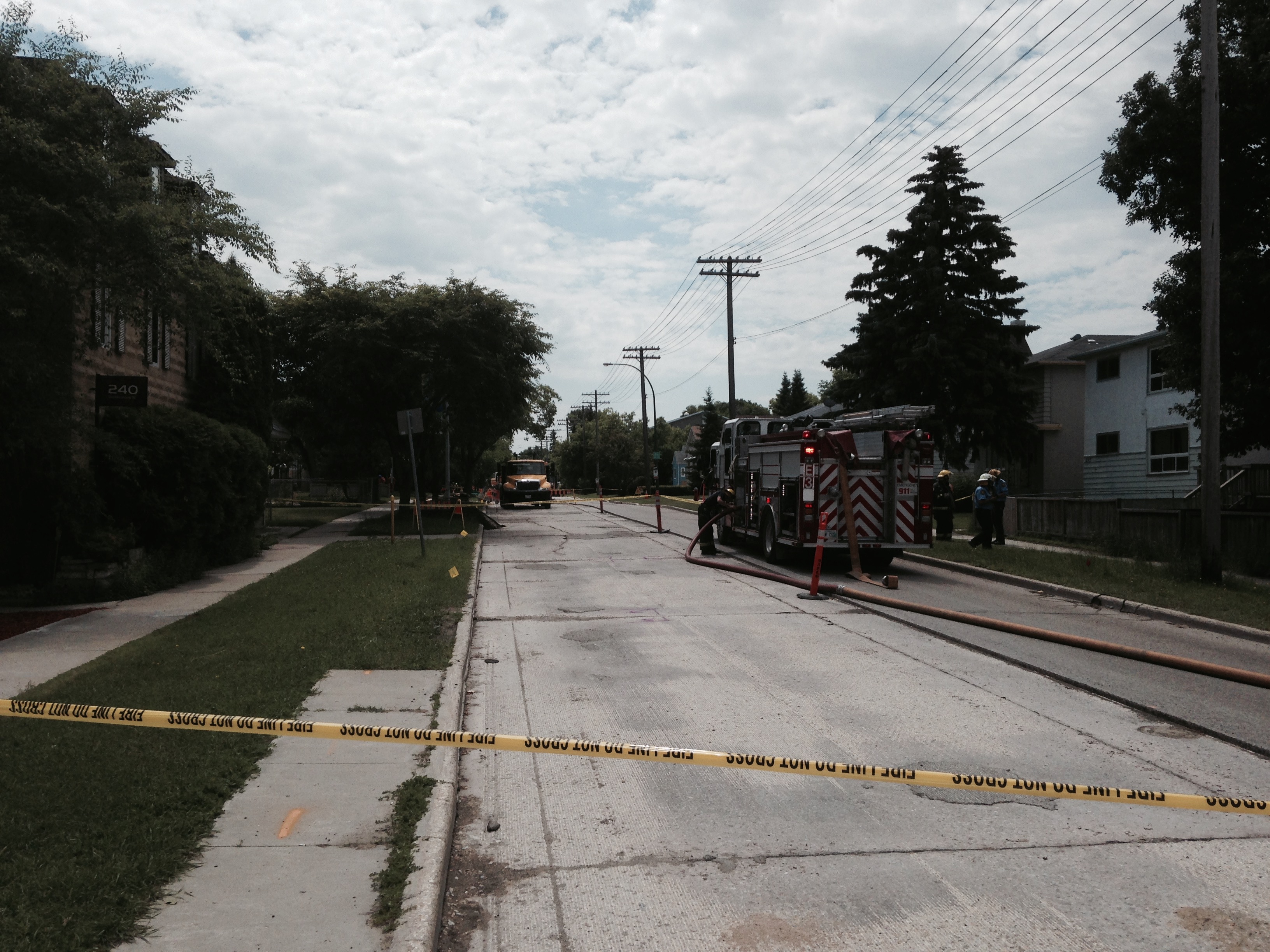 Fire crews were assembling on Des Meurons Street after a report a main gas line was severed at Edgewood Street and Des Meurons at about 12:45 p.m.