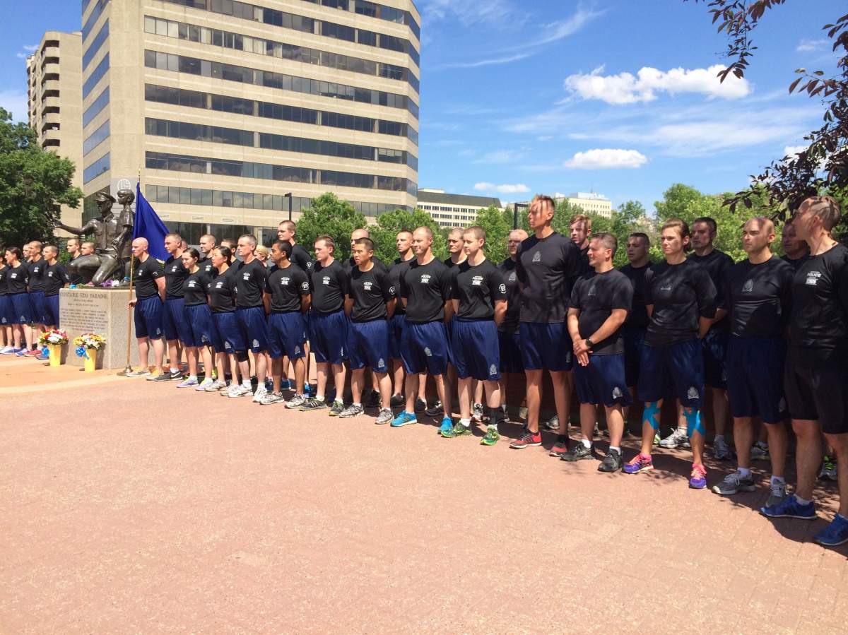 Every year on the last day of training, Edmonton police recruits take a 10-kilometre run in the river valley that ends at Ezio Faraone Park at the north end of the High Level Bridge.