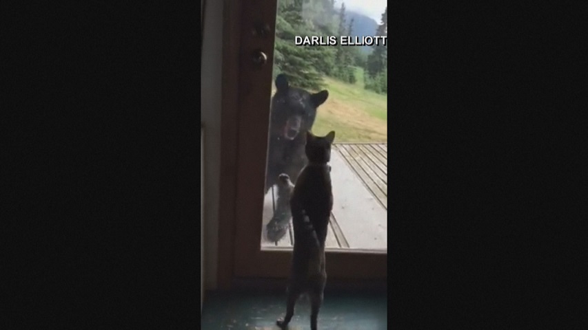 The video, which has garnered 290,000 views in two days on YouTube, shows a black bear wandering onto Elliott’s porch at her Alaska home Sunday afternoon. Nani crouches down behind the glass door as the bear peers through it.