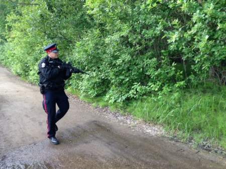 “There’s quite a bit of vegetation along the river valley and banks of the river, so if the bear hunkered down, he could still be in there, or he could wandered off to the bush.”