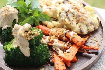 GRILLED VEGETABLES WITH TAHINI SAUCE AND SPICY PANKO