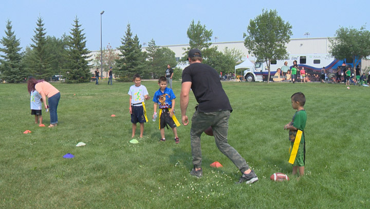 It’s also an opportunity for the local football stars to share their love of the game, according to Evan Turkington, a receiver for the Saskatoon Hilltops.