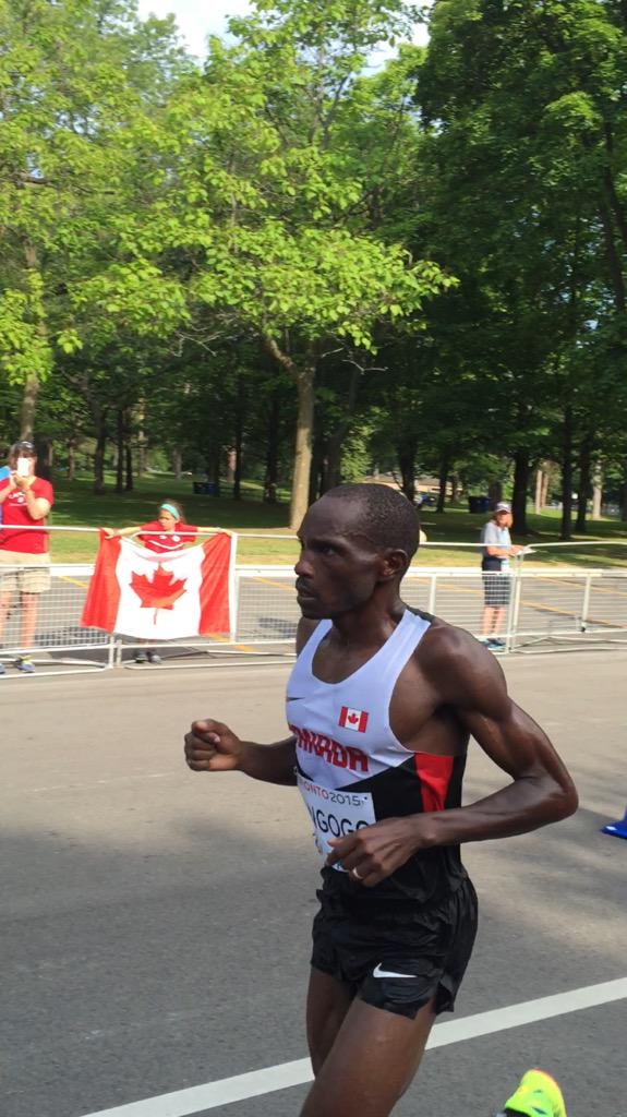 Kangogo achieves his dream of running for Canada, finishing in a time of 2:24:02, finishing ninth in a field of 18 runners.