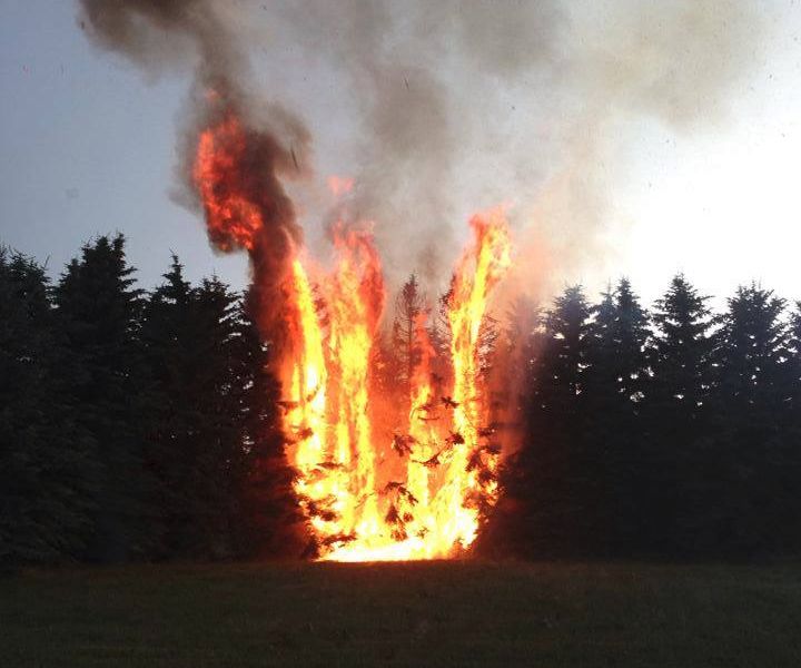 Four or five trees were destroyed by the fire. Leduc County Fire Services has confirmed the cause of the fire was lightning.