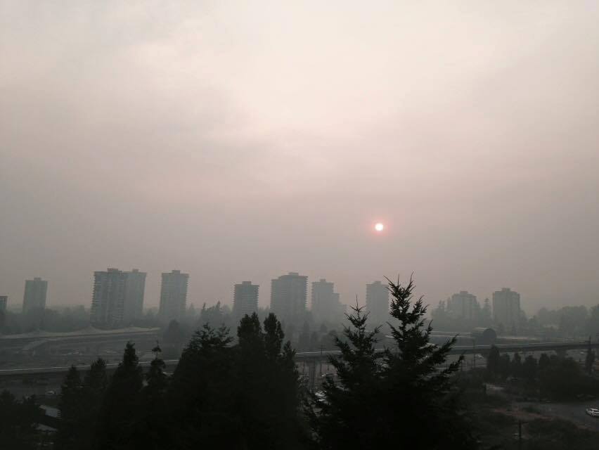 “The wind is blowing smoke from, we believe, the Sunshine Coast and the Sea-to-Sky area. There are three large fires in that area and that seems to be impacting us most heavily. But there are also fires in the B.C. Interior so we’re receiving smoke from both ends.”