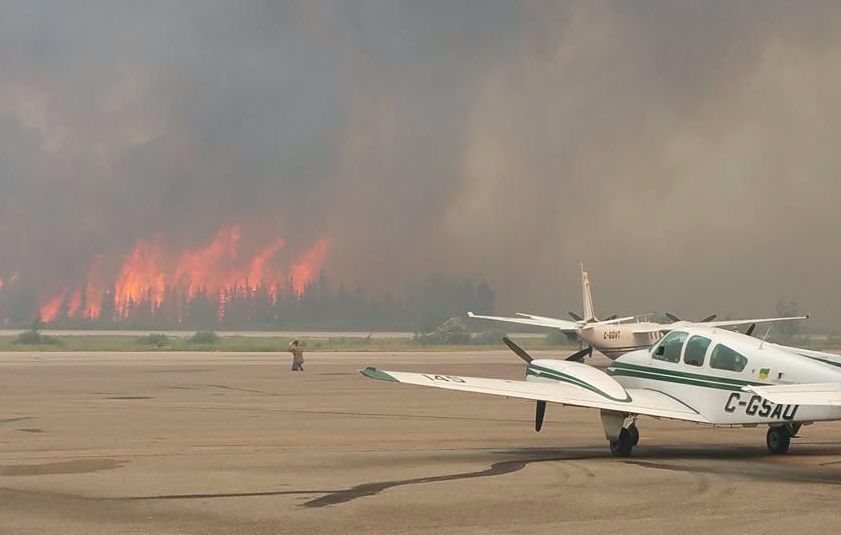A wildfire was burning precariously close to the airport in northern Saskatchewan. The fire later passed the airport and spread towards the town, prompting an evacuation.
