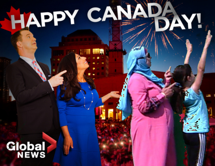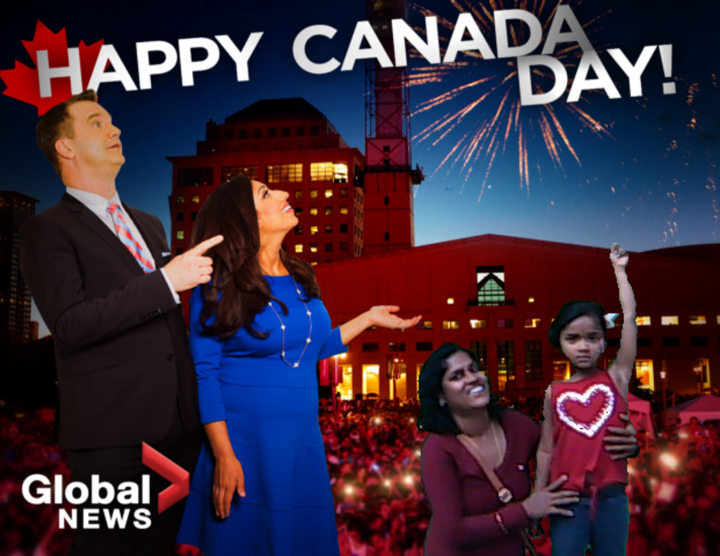 Global News had a booth on site offering free face painting and colouring for kids as well as a green screen activation where people were invited to take a Canada Day photo with Global’s 5:30pm anchors, Alan Carter and Farah Nasser.
