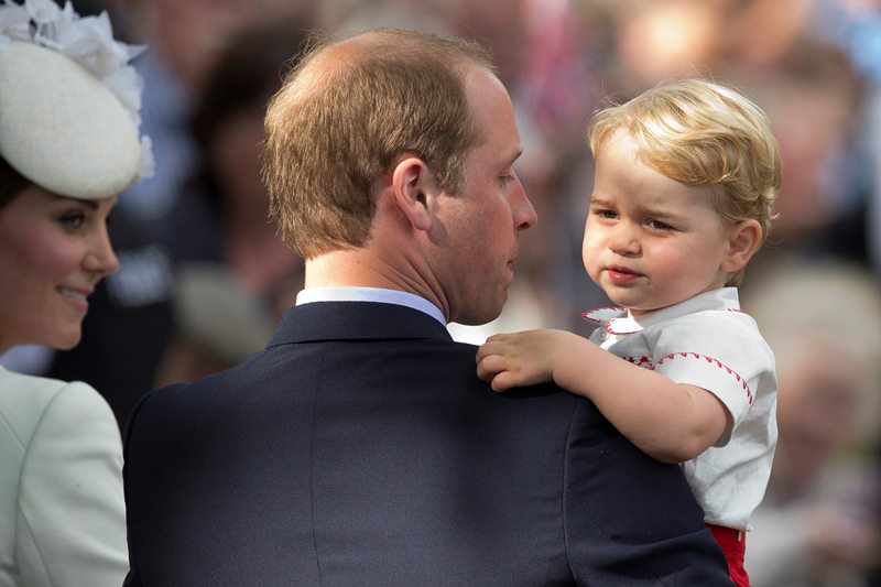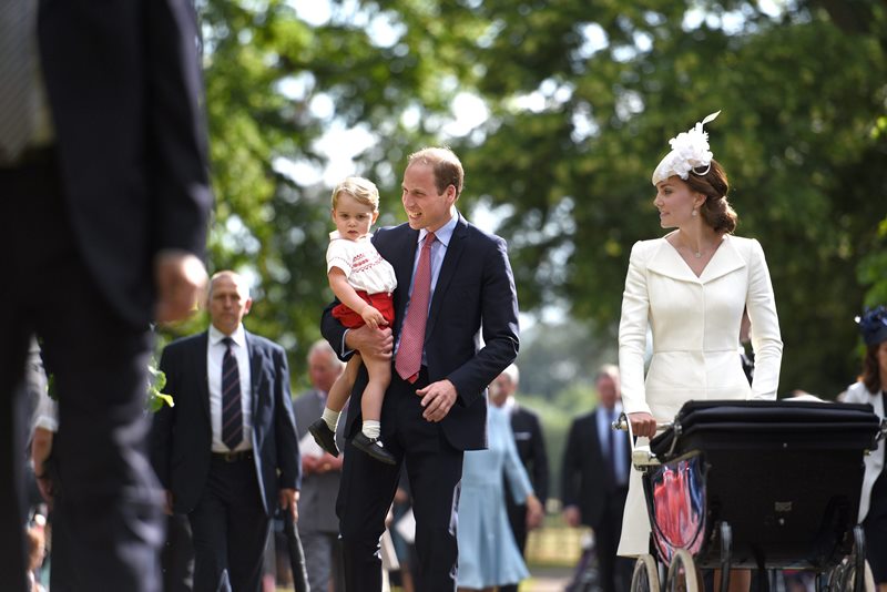 Prince William and his son, Prince George, after the christening of Princess Charlotte of Cambridge at Sandringham on Sunday July 5, 2015. Credit: Photo by Art Partner/REX Shutterstock