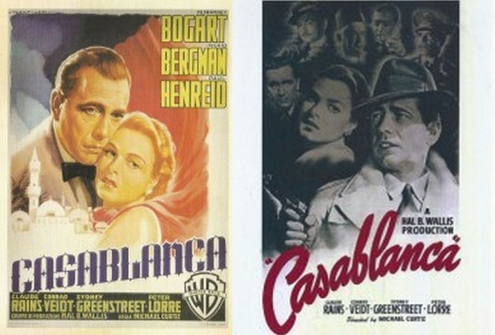 Both postcards show images from the movie Casablanca.