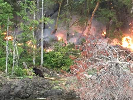 Kendall said the fire was moving along the shore when he saw it and said the bear was in view for about three or four minutes.