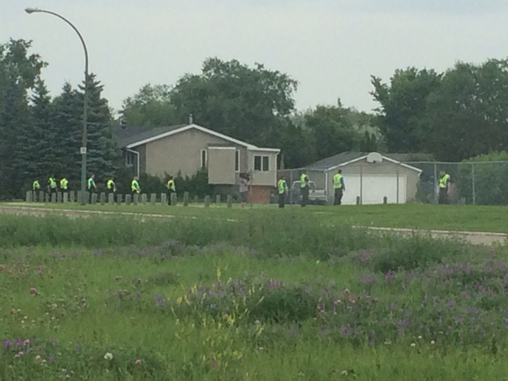 WINNIPEG – Police put up tape and put bright flags in a field at Valley Gardens Community Centre just before 2 p.m. Tuesday as they searched for Thelma Krull, 57, missing since Saturday morning.