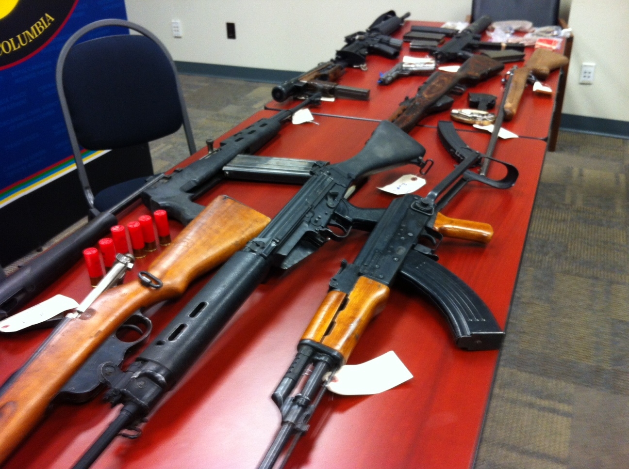 The CFSEU also seized 11 guns at a location in Burnaby in connection with the six men.