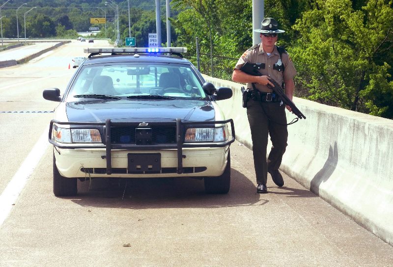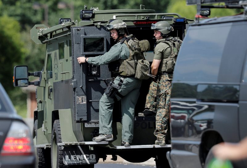 A dozen law enforcement vehicles, including a bomb-squad truck and an open-sided Army green truck carrying armed men, rolled into the Colonial Shores neighbourhood of Hixson, and police closed off streets and turned away people trying to reach their homes.