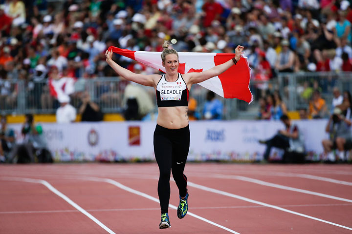 “I was thinking ‘Oh no, I’d better get it together,”‘ Gleadle said. “I was standing there and I thought to myself ‘I bet the Canadian anthem would sound a whole lot better from the podium if I was on it,’ so that inspired me to throw better.”