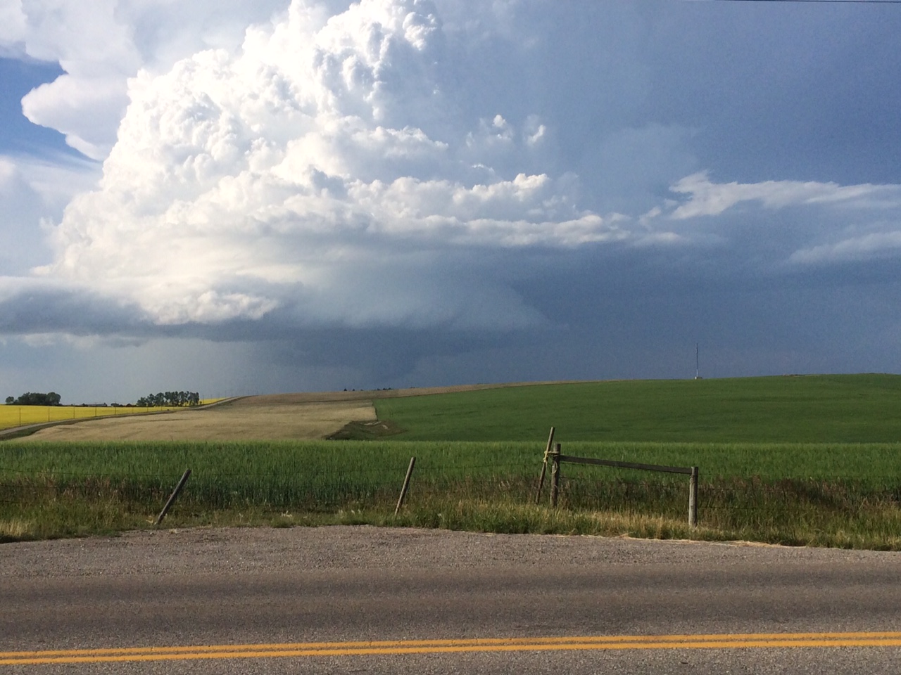 Tornado warned cell north of Crossfield. Taken at 6:20pm #abstorm @weathernetwork @CTVCalgary pic.twitter.com/UK4yfTceVF