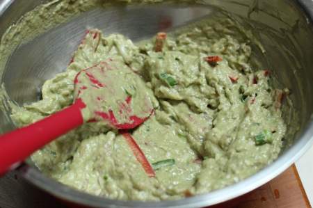 In a large bowl, combine the pork, garlic and remaining 1/2 teaspoon of salt. Mix well. Add the bean sprouts, red pepper, scallions and serrano, if using, and stir well. Add the pureed bean and rice mixture and stir until well combined.