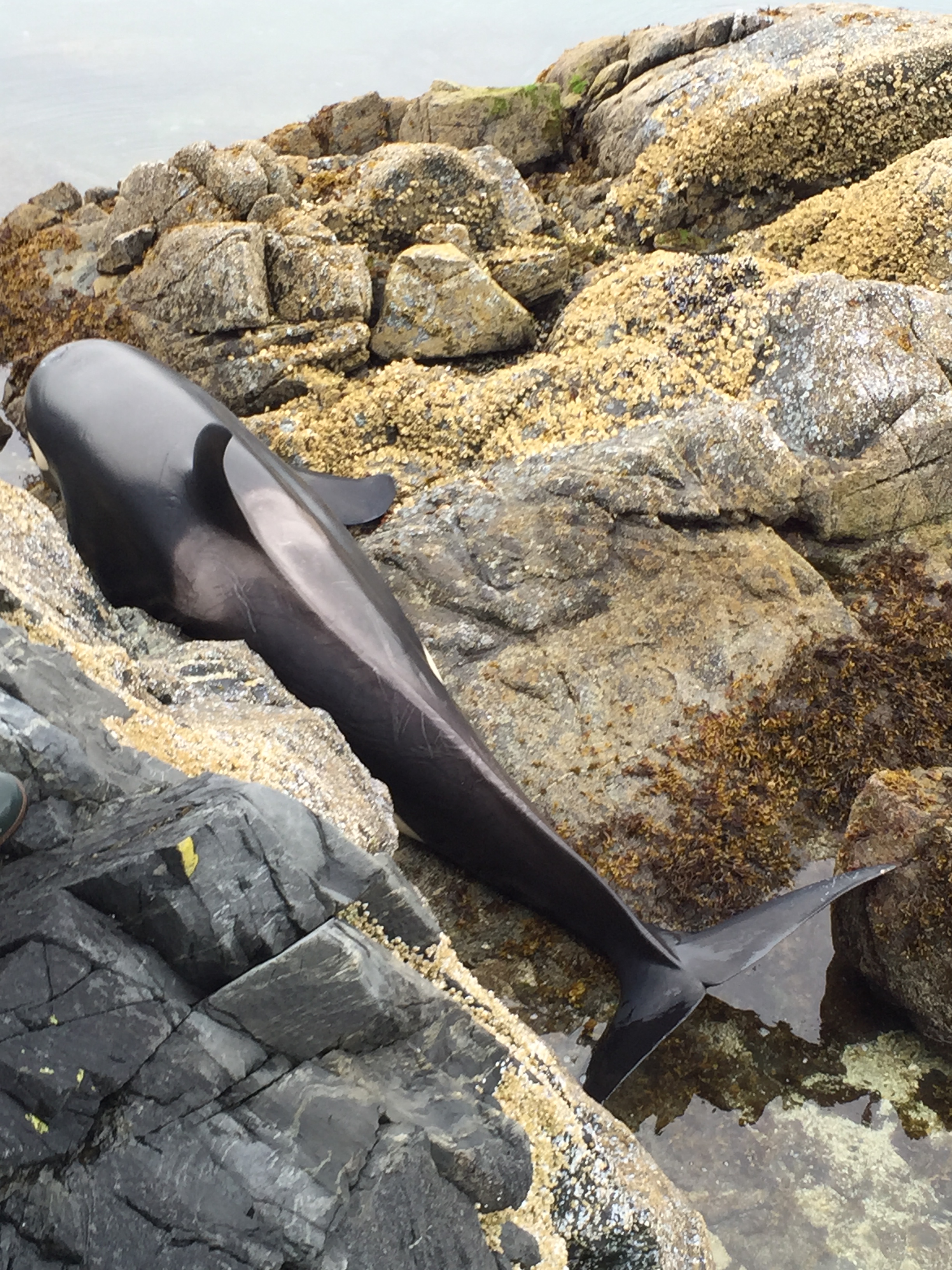 The orca is about 11 years old and belongs to Transient Pod T69. She is known as T69E. When she was stranded, the four members of her pod stayed fairly close by, circling the rocks.