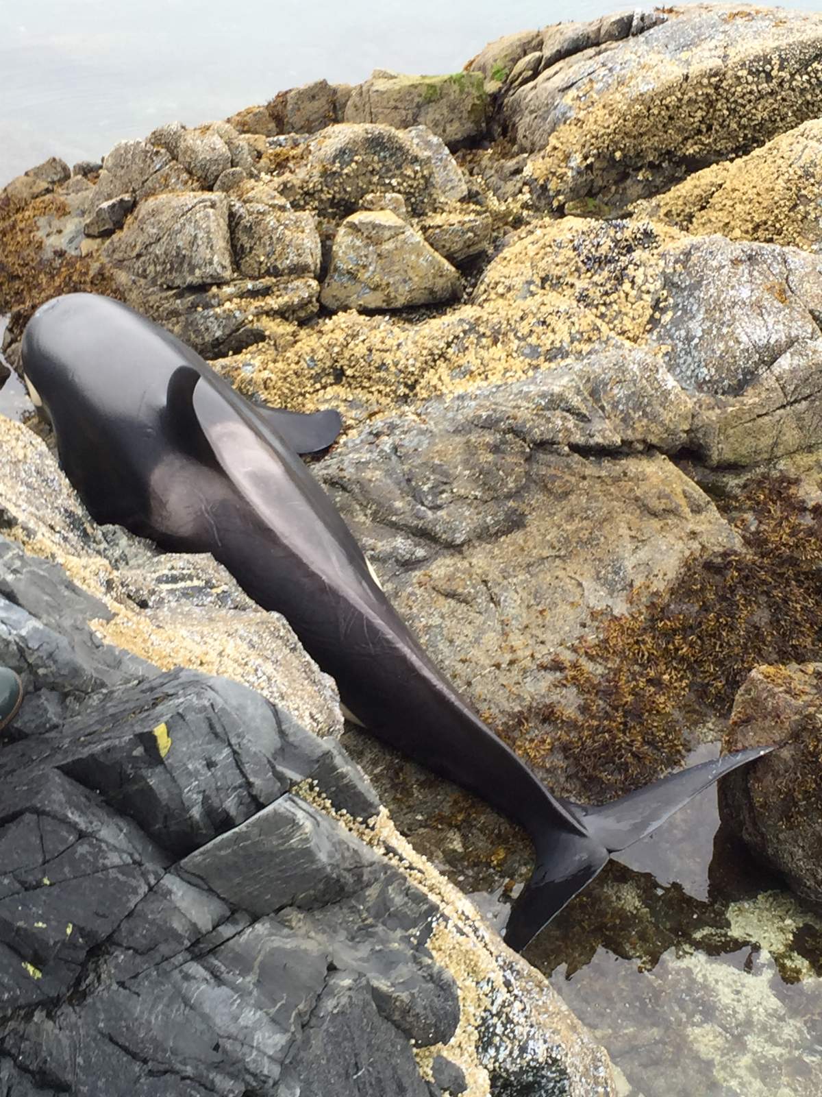 The female had breached herself trying to hunt seals on the rock and became stuck during the tide.