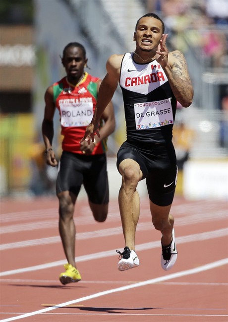 Andre De Grasse, meanwhile, finished third in his 200 semifinal – his fifth run of the Pan Am Games. The 20 year old from Markham, Ont., crossed in 20.12 seconds, a night after he won the 100-metre title.