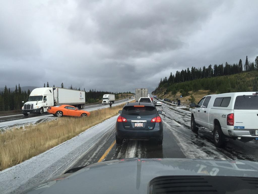 There is currently a travel advisory on the Coquihalla Highway, between Merritt and Kamloops, due to melting hail.