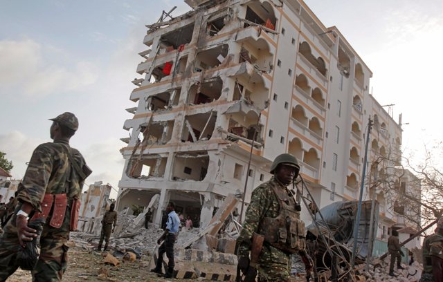 MOGADISHU, Somalia – Somali police say the toll for the massive truck bomb attack on the capital’s premier hotel has risen to 15, including a Kenya diplomat, a Chinese embassy guard and three journalists.