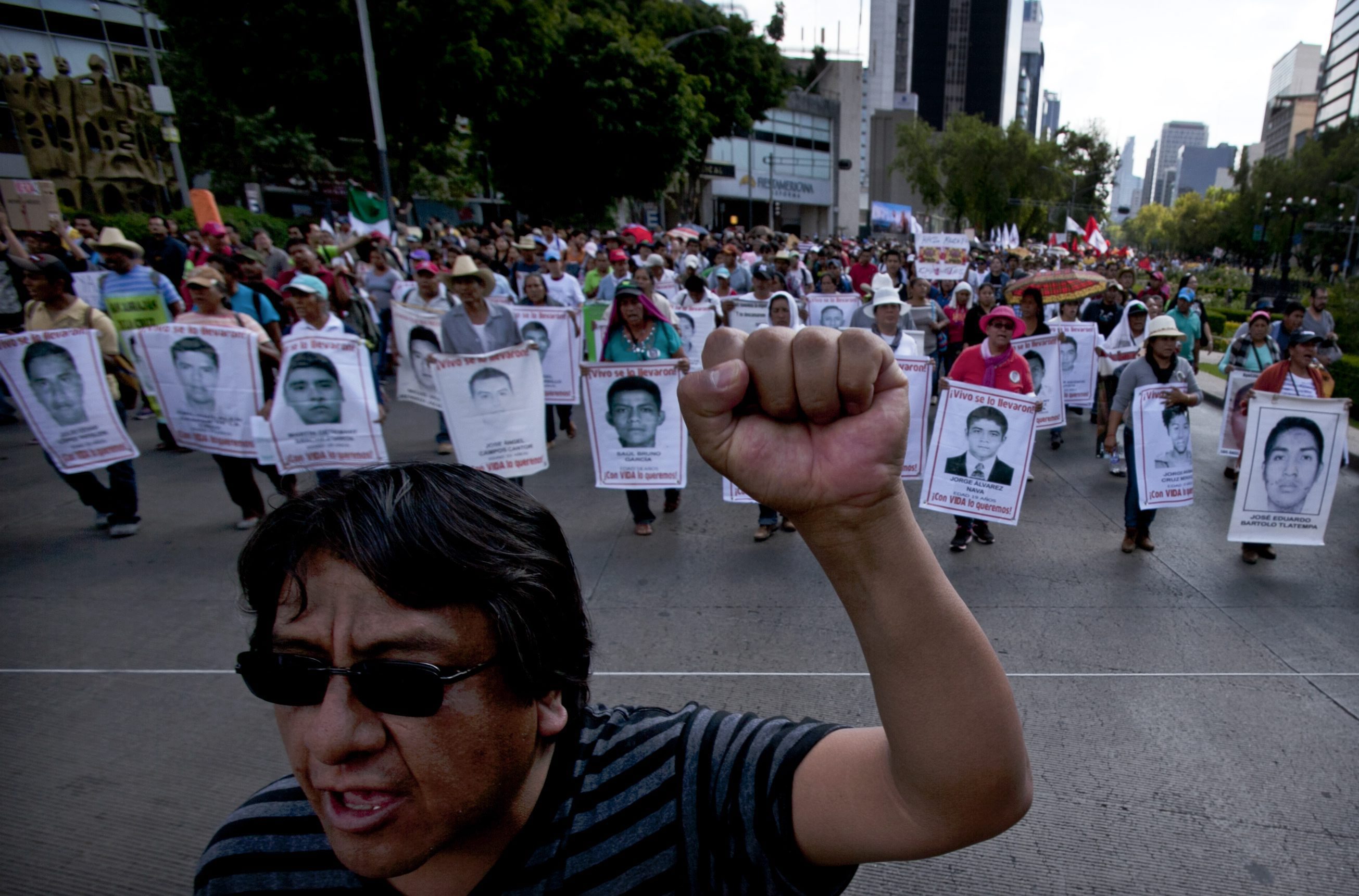 On Sunday, a few hundred people led by parents of the missing youths marched in Mexico City to call for justice in the case. Demonstrations have been held on the 26th of each month since the incident.