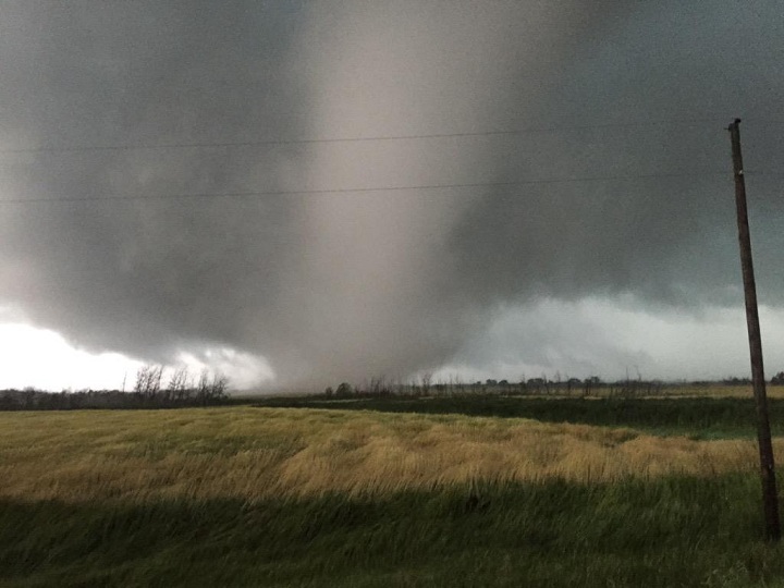 “We have a suggestion just north of Pierson in the far southwestern part of the province then it moved towards the north and it was on the ground for maybe up to three hours which is really quite amazing,” said Environment Canada meteorologist Natalie Hasell. “Normally tornadoes are on the ground for maybe just a few minutes, so the fact this was on the ground for much longer than that gives you a really good idea for how all the dynamics and thermal dynamics were lined up.”
