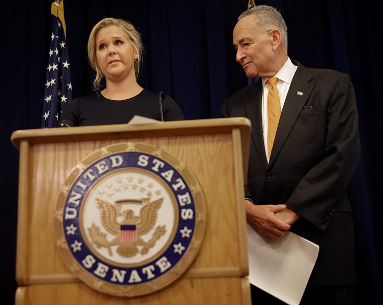 NEW YORK — Comedian Amy Schumer spoke tearfully of two women who were shot to death during a screening of her movie, Trainwreck, and asked lawmakers Monday to support a gun control bill sponsored by her second cousin, U.S. Sen. Charles Schumer.